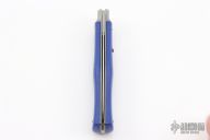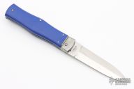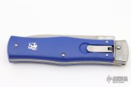 This Leverlock Auto by Mikov Knives features a polished spear point blade with false top edge. The handle is comprised of steel bolsters, lever and pins with blue scales over steel liners and backspacer. Strong leaf spring action. Excellent condition.