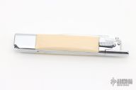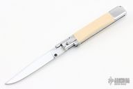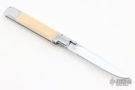 This Picklock Auto by Agasi Hambartsumian of Armenian Doctor Knives features a mirror polished blade. The handle has a polished stainless steel frame with stainless steel backspacer, mammoth ivory scales. New from maker.
