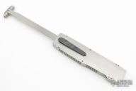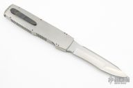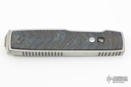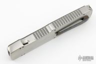 This Giant OTF Auto Prototype by Reese Weiland features a hand rub satin finished multi-ground blade. The handle has a satin finished stainless steel frame  with textured and flamed titanium overlay and tip down clip with hidden screws, titanium charging handle. Comes with zippered case. Nice action. Has a couple of light scuffs, otherwise excellent condition.
