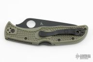 This DLT exclusive version has OD Green FRN handle scales with Spydercos Bi-Directional texturing for fantastic grip and supported by stainless steel liners. Complimented with black hardware and a 3.4 inch full flat ground black coated Cru-wear blade, it looks as great as it's cutting performance.