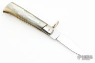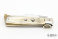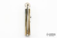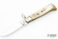 This Ringpull Auto by AGA Campolin features a mirror polished blade. The handle has nickel silver bolsters, honey horn scales, brass liners and stainless steel backspacer. Has a ring pull. Has a couple light scratches, otherwise excellent condition. Dated 1947-2007
