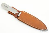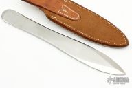 This Model 9 Pro-Thrower by Randall Made Knives. It features a satin finished blade and handle with .229" stock 1.467" blade depth. Solid one piece construction. Accurately balanced and scientifically designed for those desiring a practically indestructible throwing knife. Comes with original brown leather sheath. Has some light scratches, otherwise excellent condition.