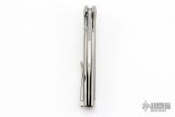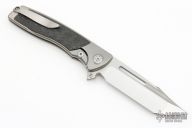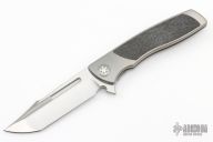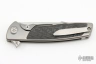 This Mini EVO Flipper from Brian Nadeau features a belt satin finished blade with a fullers, thumbhole, flipper and notched thumbrest. The handle is comprised of a bead blasted titanium frame with carbon fiber inlays, satin titanium tip up clip. Rides on bearings, nice detent, lockup and blade seating, stainless lockface insert. Comes with original box. New from maker!