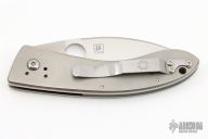 This Bob Lum Chinese folder by Spyderco has a satin finished blade with thumbhole. The handle has titanium scales and a stainless steel liner, SS clip. Comes with original box and papers. Has some light scratches, otherwise excellent condition.