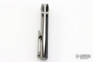 This Chaves Scapegoat features a satin finished drop point blade with the Chaves logo and dual thumbstuds. The handle is composed of black G-10 and stonewashed titanium with a matching tip up titanium pocket clip. Comes with original box and extra clip. Excellent condition.