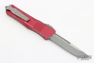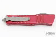 This Combat Troodon OTF automatic features an Apocalyptic finished S/E blade with a standard edge. Distressed Merlot aluminum frame with apocalyptic hardware and stainless steel clip, tip down carry. Glass breaker. S/N #40774. Date 10/2022. Comes with original box and papers. Excellent Condition.