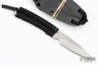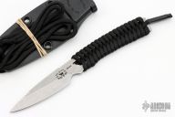 This Helium by R&N Blades features a stonewashed blade with notched thumbrest, .102" blade stock and .755" blade depth, full tang construction with paracord wrapped handle. Comes with a molded plastic sheath. Excellent condition.