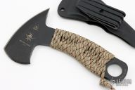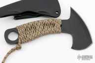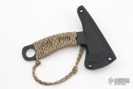 The 0.32" thick 1095 steel feels as solid as it looks, but won't weigh too much on your belt. The camo paracord wrap has obvious uses for survival, but also gives a comfortable grip on the knife. The minimalistic Kydex sheath keeps the weight down, but holds the Micro Hawk in place securely. The Micro Hawk was designed to be an EDC defensive tool, small enough to carry daily, and can also be versatile. Excellent Condition.