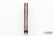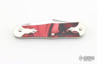 This knife by Great Eastern Cutlery features a mirror polished blade with nail nick. The handle has nickel silver bolsters and liners, red acrylic covers. Comes with original packaging. Excellent condition.