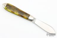 This knife by Great Eastern Cutlery features a satin finished blade with nail nick. The handle has nickel silver bolsters and brass liners, bone covers. Comes with original packaging. Excellent condition.