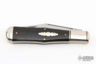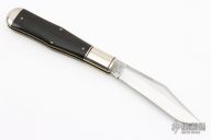 This knife features a mirror polished clip point blade with a single nail nick. The handle has nickel silver bolsters, Gabon Ebony covers and brass liners. Includes original knife tube. Excellent Condition.