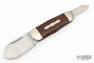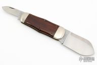 This Tidioute Whaler Toenail by Great Eastern Cutlery has two 1095 carbon steel blades with nail nicks. The handle has double nickel silver bolsters, desert ironwood covers with a nickel silver shield escutcheon, brass liners, steel springs. Comes with original tube packaging.  Excellent Condition.