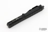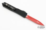 This Ultratech OTF automatic by Microtech features a D/E red blade. Black aluminum contoured frame with black tip down stainless steel clip. Dated 09/2021 and s/n 5703. Excellent condition. Includes original box and papers.