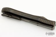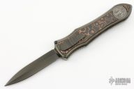This knife is a Deadlock Model C by Grant and Gavin Hawk. It has a double-edged black blade. The handle has a Fat Carbon inlays in the black titanium frame with a tip down spring clip, titanium. The thumb slide on the handle is also titanium and handle has a titanium overlay. Comes with a cloth pouch. Grant and Gavin Hawk set out to create a double action OTF with no blade play.... They did it, NO blade play. Comes with tool, cloth pouch. New from maker at the 2023 Blade Show Texas.