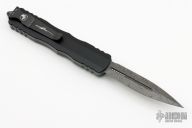 This Dirac OTF automatic by Microtech features a D/E Damascus blade with a standard edges. The handle has a black aluminum with stainless steel tip down clip and hardware. Serial number 158 and dated 08/2022. Comes with original box and papers. Excellent Condition.