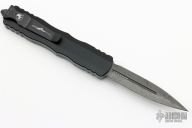 This Dirac OTF automatic by Microtech features a D/E Damascus blade with a standard edges. The handle has a black aluminum with stainless steel tip down clip and hardware. Serial number 122 and dated 08/2022. Comes with original box and papers. Excellent Condition.