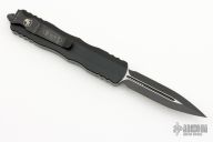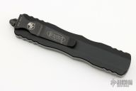 This Dirac OTF automatic by Microtech features a D/E black blade with a standard edges. The handle has a black aluminum with stainless steel tip down clip and hardware. Serial number 11472 and dated 08/2022. Includes the original box and papers.  Excellent Condition.