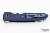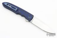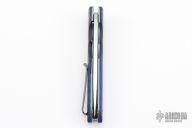 This Model 8 Flipper by Jason Clark features a hand rub satin finished blade with a checkered flipper. The handle has black/blue carbon fiber scales, bead blasted and anodized titanium liners, floating satin finished stainless steel backspacer, tip up anodized titanium clip. Rides on IKBS, nice detent, lockup and blade seating. Comes with a leather slip sheath and COA. New from maker at the 2023 Blade SHow Texas.