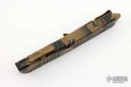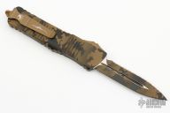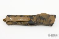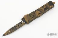 This Combat Troodon OTF automatic features a camo coated D/E blade with one fully serrated edge. The handle is composed of a camo aluminum frame. Stainless steel clip. Glass breaker. Signature Series, 08/2022, S/N 062. Excellent condition. Comes with original box and papers.