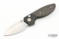 The blade still features a deep hollow grind, but this time Alliance went with Elmax for its impressive durability, high compressive strength, and superior corrosion resistance. The Mini Slim Pickins is perfectly sized for everyday carry with a stout build and excellent ergonomics. The bolstered edition is paired with two handsomely contoured scales of copper infused carbon fiber and solid copper pivot collars.