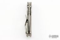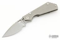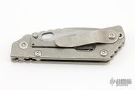 This PT by Mick Strider features a stonewashed blade with notched thumbrest and thumbhole. The handle has a stonewash titanium frame with matching tip up clip. New Condition.