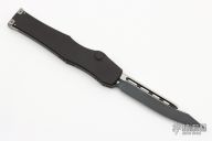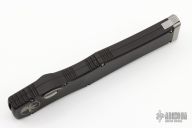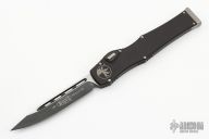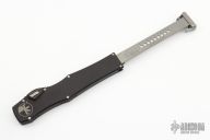 This Halo VI by Microtech knives features a black drop point blade with fullers and satin flats. The handle has a black aluminum frame with blasted stainless steel hardware and charging handle. Dated 03/2018 and #377. Comes with Original box and papers. Excellent condition.