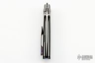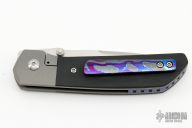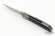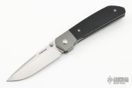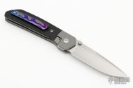 This Mula Front Flipper by Enrique Pena features a hand rub satin finished drop point blade with swedge, notched thumbrest and front flipper. The handle has a blasted titanium frame with black canvas micarta scales, and a tip up mokuti clip. Nice detent, lockup and blade seating. Comes with zippered case. New from maker at the 2023 Blade Show Texas.