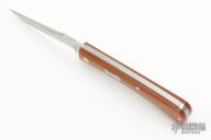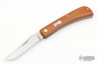 This slipjoint by Matt Collum features a hand rub satin finished blade with nail nick. The handle has vintage layered honey gram paper micarta covers, nickel silver/stainless steel pivot, stainless steel liners and spring. Stainless steel shield. Has half-stop, flush in all positions. Comes with a zippered case. New from maker at the 2023 Blade Show Texas. These are as nicely done and as clean as any!