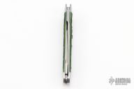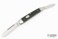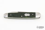 This slipjoint by Matt Collum features a hand rub satin finished blades with a long pull nail nick and a regular nail nick on the smaller blade. The handle has stainless steel bolsters, green jigged bone covers, stainless steel liners and spring. Stainless steel shield. Has half-stop, flush in all positions. Comes with a zippered case. New from maker at the 2023 Blade Show Texas. These are as nicely done and as clean as any!