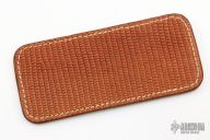 This leather slip sheath by Robertson Leather Works features tan lizard skin. It is 5.5" long by 2.5" wide. New from maker at the 2023 Blade Show Texas.