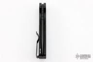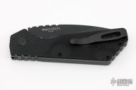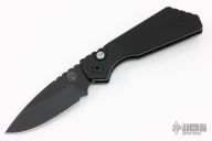 This Pro-Strider SNG by Pro-Tech and Strider Knives features a black blade with notched thumbrest. The handle has a black textured aluminum frame with black hardware and black stainless steel tip up clip. Abalone inlaid push button.  New from Maker!