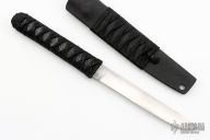 This tanto from Wayne Watanabe features a hand rub satin finished blade with .144" blade stock and .641" blade depth, hidden tang construction. The handle is comprised of black cord japanese style wrap over purple stingray skin. Includes a kydex sheath with japanese style wrap accent. Excellent condition.
