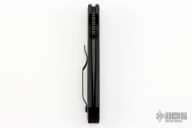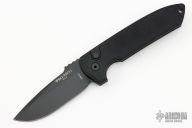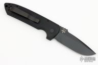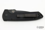 This LG303 Rockeye has a black blade with notched thumbrest. The handle has a black aluminum frame with a matching steel tip up pocket clip and a tritium button. Typical flawless Pro-tech mechanics and blade seating. Comes with original box and papers. New from maker!