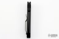 This Rockeye Auto Operator by Pro-Tech has a black blade with notched thumbrest. The handle has a black textured aluminum frame with a matching steel tip up pocket clip. Typical flawless Pro-tech mechanics and blade seating. Comes with original box and papers. New from maker!