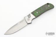 This ATCF Auto by Pro-Tech features a stonewashed Magnacut blade with notched thumbrest. The handle has a stainless steel frame with Fat carbon scales, tip up milled titanium clip with hidden screws.  Black lip pearl inlaid into the push button. Comes with original box and papers. New from maker!