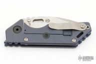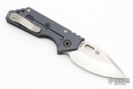 This 3/4 AR by Strider Knives features a satin finished blade with notched thumbrest and thumbhole. The handle has a tumbled and anodized titanium frame with a stonewashed titanium tip up clip. Nice detent, lockup and blade seating. Excellent condition.