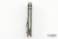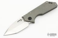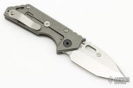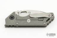 This 3/4 AR by Strider Knives features a stonewashed blade with notched thumbrest and thumbhole. The handle has a tumbled and anodized titanium frame with a stonewashed titanium tip up clip. Nice detent, lockup and blade seating. Blade Steel: S45VN.  Excellent condition.