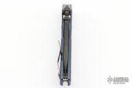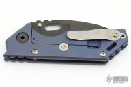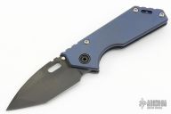 This 3/4 AR by Strider Knives features a black PVD blade with notched thumbrest and thumbhole. S45VN blade steel. The handle has a tumbled and anodized titanium frame with a stonewashed titanium tip up clip. Nice detent, lockup and blade seating. Excellent Condition.