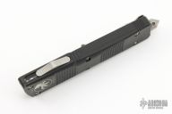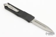 This Troodon by Microtech features a bead blasted blade with one fully serrated edge. The handle has a black aluminum frame with blasted hardware and tip down clip. Dated 10/2010 and s/n 08464. Has some scuffs and dings, otherwise good condition.