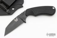 The Benchmade Azeria fixed blade features a wharncliffe style N680 steel blade with a black finish. Deep notched jimping, paired with a comfortable finger groove, provides added grip security and blade control during use. Its handle is fitted with textured Grivory scales and a convenient lanyard hole to promote quick withdrawal. The Azeria includes a low-profile molded sheath with an ambidextrous clip designed for duty belts.