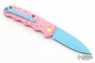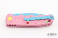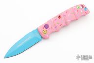 Have you ever been unfortunate enough to have to share a donut? Your plight only gets worse when you find you have to cover your high-speed, low-drag, modified, custom, mirror-edged piece of pocket jewelry in sticky sweetness. What you need is a knife designed from the ground up to go to war with a donut. And although its path to existence was unorthodox, the Dessert Warrior is here! This automatic will snap open before anyone can take more than their half of the donut. The handle is bright pink with sprinkles, and the blade has a candy blue finish, making the knife blend in with the pretty pastries of the shop. Gone are the days of not having the right tool for the job!