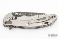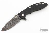 This XM-18 Spanto by Rick Hinderer Knives features a Damascus blade, notched thumbrest and flipper and dual thumbstuds. The handle has a stonewashed titanium frame with a black G-10 scale. Clip can be mounted for tip up or down carry. Nice lockup, seating, and detent. Comes with original box, papers and extra hardware. Excellent condition.