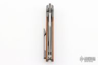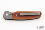 This Caballero Front Flipper by Enrique Pena features a hand rub satin finished drop point blade with swedge, notched thumbrest and front flipper. The handle has a blasted titanium frame with natural linen micarta inlays, and a tip up titanium clip. Nice detent, lockup and blade seating. Comes with zippered case. New from maker at the 2023 Blade Show Texas.