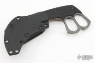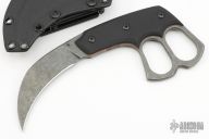 This Custom Prescription by Bastinelli Knives features a dark tumbled hawkbill blade.  The handle features G10 Scales and fingerholes. Full tang construction with .184 blade stock and .970 blade depth. Includes a kydex sheath and a padded zippered case.  New from Maker!
