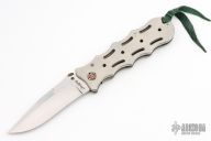 Labeled by sportswriter B.R Hughes, as the "Father of the Modern Day Folding Knife," Ron Lake has been making knives for over 50 years. His working career started in 1960 after obtaining a machine tool degree. He was first employed as a model/pattern maker in an electrical products manufacturing company where projects included naval sonar equipment. He then worked for ten years at a parts manufacturer making prototypes for the aviation and automotive industry. In 1965 he set up a small workshop in his garage and started making knives as a hobby in his spare time after work. Ron's first knives were mostly fixed blade hunting knives, crude by comparison to his work just a few years later, and in 1970 he designed and produced the first ever Tail-Lock "Interframe" folder. The design employed a machined metal frame in which the handle material was housed, thus protecting the handle material and making for a stronger knife. Additionally, placing the tab at the end of the lock bar gave the user a mechanical advantage. At that time these design elements were recognized as major advancements in folding knives. Ron joined the knifemakers' guild in 1971 and became a full time maker the following year. His signature style knife was patented in 1974, and he was elected to the Cutlery Hall of Fame in 1998. Ron Lake's knives have always displayed a very clean and minimal aesthetic with the utmost emphasis on craftsmanship and precision. The Interframe folder has stood the test of time; nearly fifty years later this patented design remains one of the most recognized knife forms. There are Lake Interframe folders housed in the collections at the Smithsonian Museum and the Metal Museum in Memphis, TN. Ron has multiple patents & trademarks, has designed knives for companies including Coast Cutlery, CRKT and Schrade, has contributed information to articles in magazines and books, and freely gives advice to young knifemakers. Although Ron no longer takes orders for his custom knives, and only makes a few a year, he does attend shows including the East Coast Custom Knife Show, the Arts in Metal show and The Art Knife Invitational. He is also actively designing and producing a patented, limited edition knife that is exquisitely crafted in Italy.