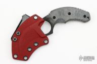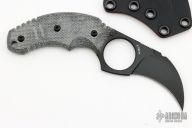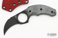 This Ligament by Bastinelli Knives is a Fred Perrin design, it features a black pvd blade with swedge and notched thumbrest, .118" blade stock and 1.004" blade depth, mortis tang construction. The handle has custom micarta scales. Comes with a kydex sheath with belt clip and zippered case. New from maker!