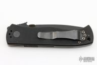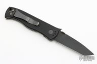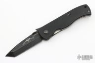 This CQC-7 by Emerson Knives has a tanto chisel ground tanto blade with notched thumbrest, wave features and a single thumbstud. The handle has G-10 scales, titanium liners, barrel spacers, and a tip up black stainless clip. S/N 778. Nice detent, lockup and blade seating. The blade has been resharpened.  Light scuffs/scratches are visible on the blade and handle otherwise the knife is in excellent condition.