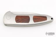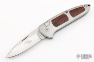 This Speed Lock Auto from Boker features a satin finish drop point blade with swedge. The handle has a aluminum frame with cocobolo inlays. Lanyard hole in pommel. Has some light scuffs, otherwise good condition.