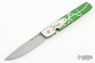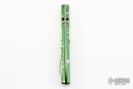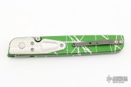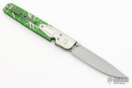 This M12 side-opening automatic by Rob Dalton features a bead blast blade and a milled aluminum frame. Bead blast titanium clip. Push button coil spring opening. Excellent condition. #132on handle.