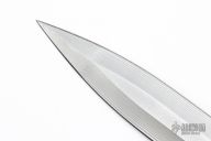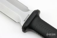 This OMG-15 Prototype by Scrapyard features a Raw Dog finished double edge blade .225" blade stock and 1.68" blade depth, hidden tang construction. The handle is rubber with a lanyard hole. New from maker.